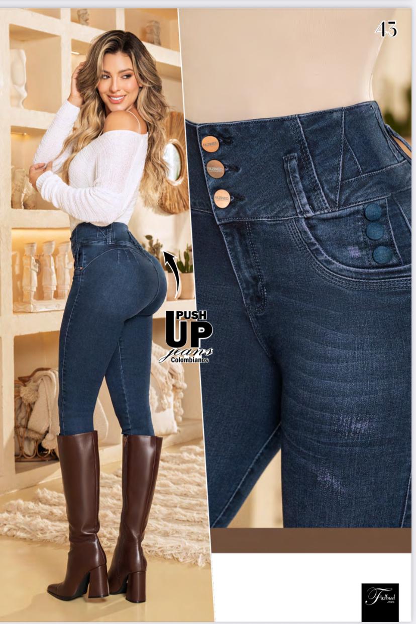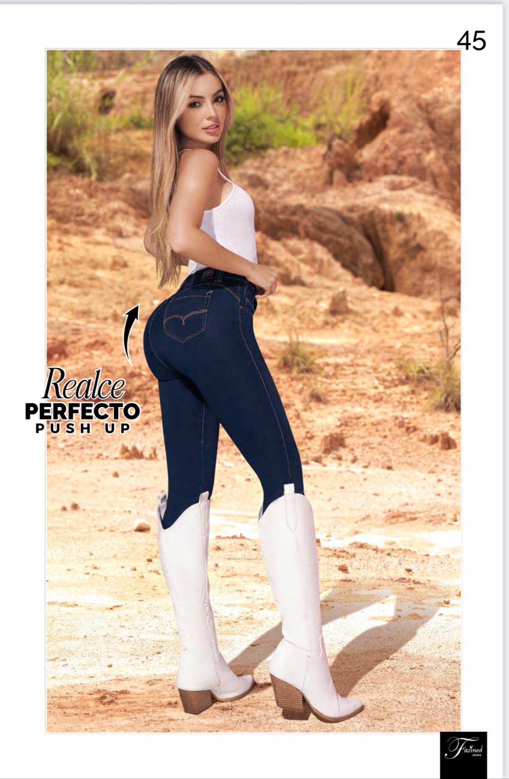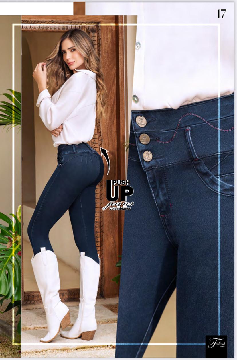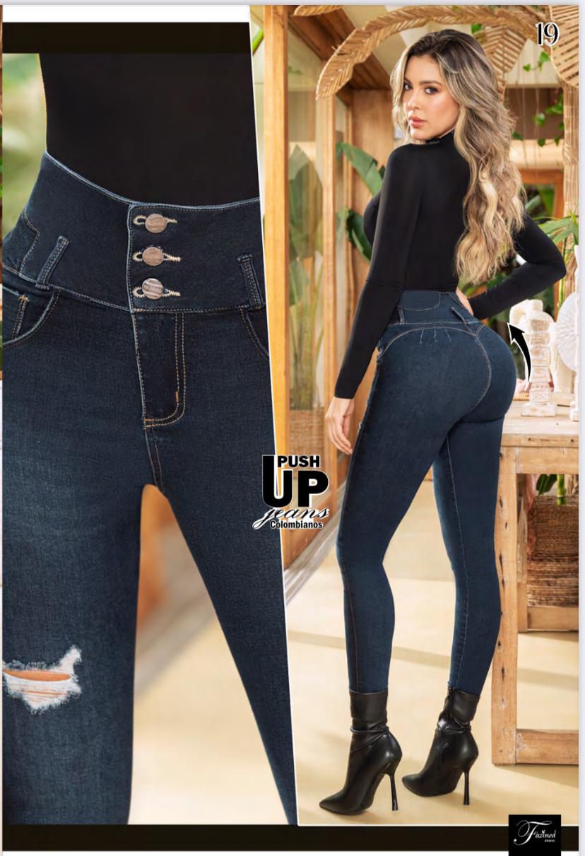 Los Jeans 100% colombianos, gracias a su diseño Push up (levanta cola), realzan y estilizan tu figura de manera natural. Siéntete hermosa y segura en toda ocasión