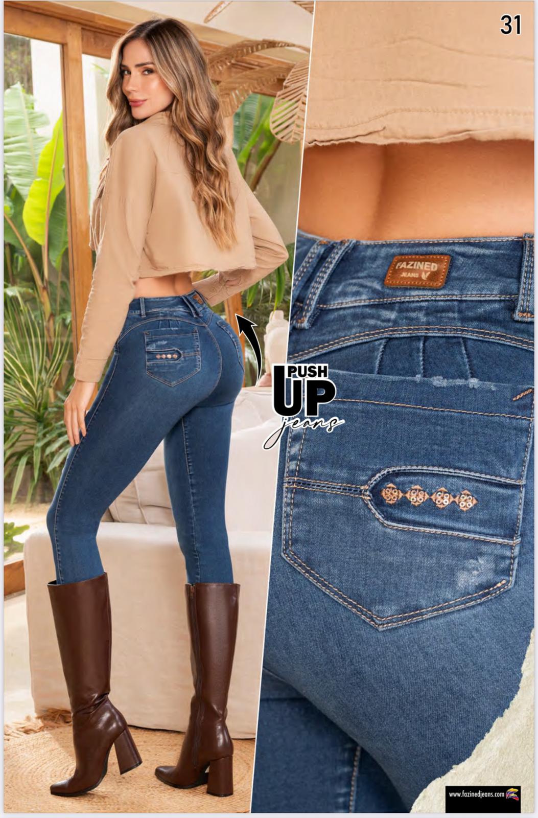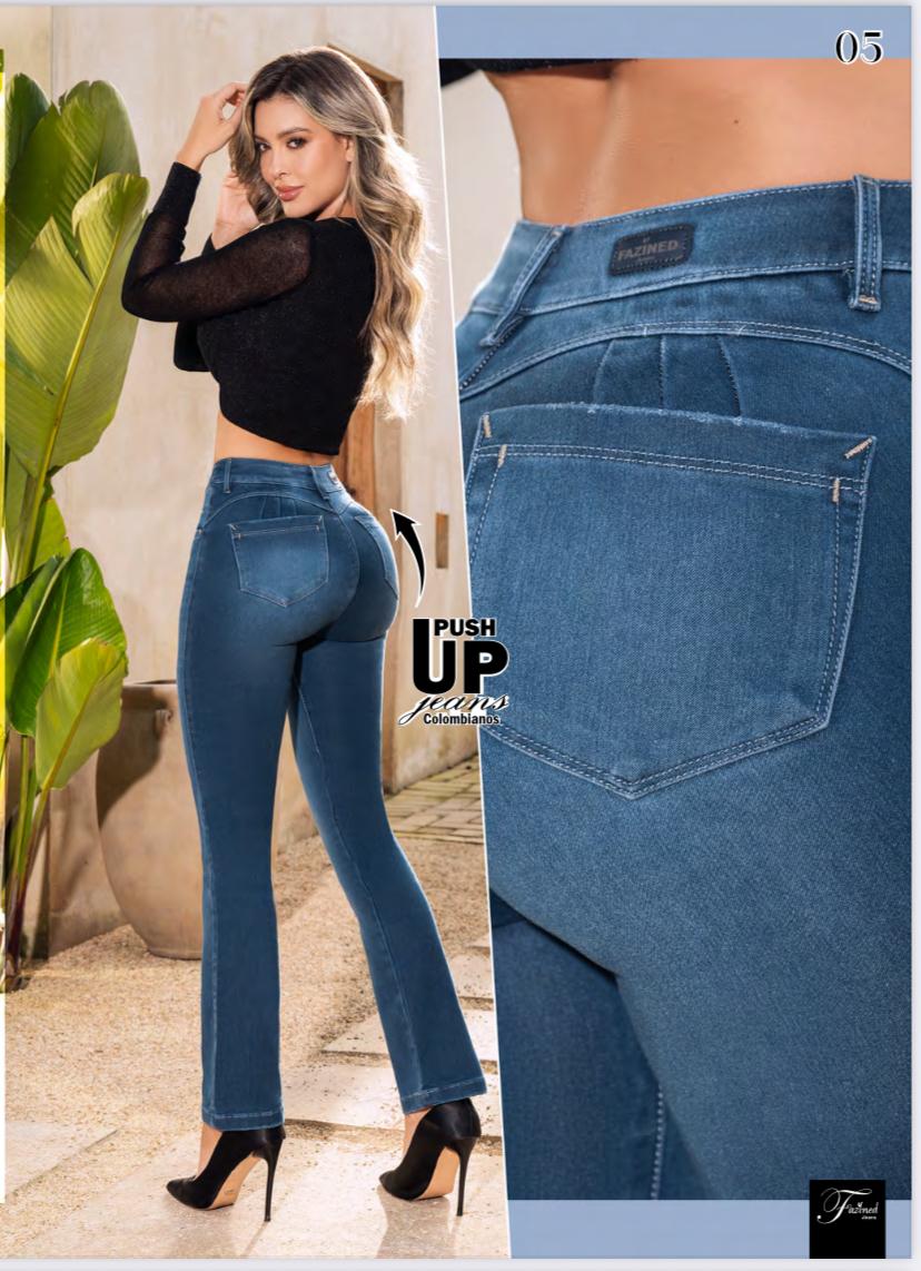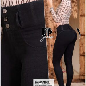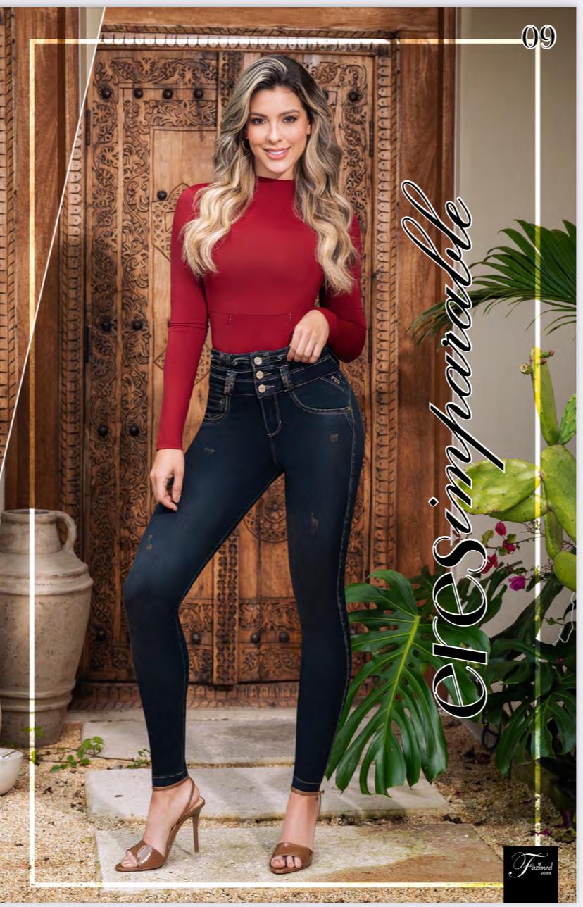 Los Jeans 100% colombianos, gracias a su diseño Push up (levanta cola), realzan y estilizan tu figura de manera natural. Siéntete hermosa y segura en toda ocasión